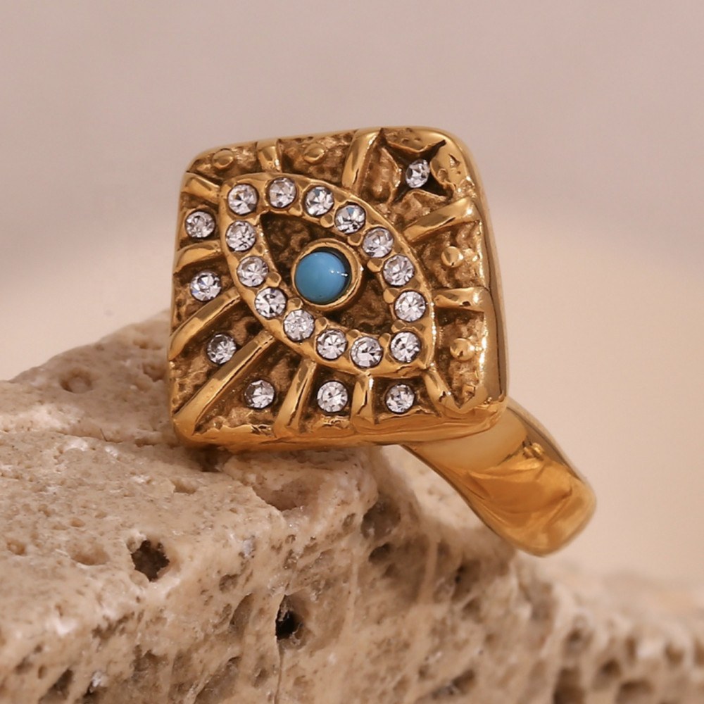 خاتم من الفولاذ المقاوم للصدا مع حجر الزركون