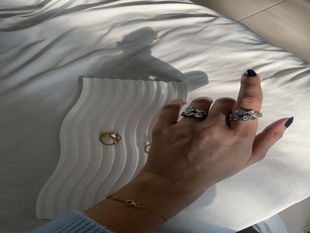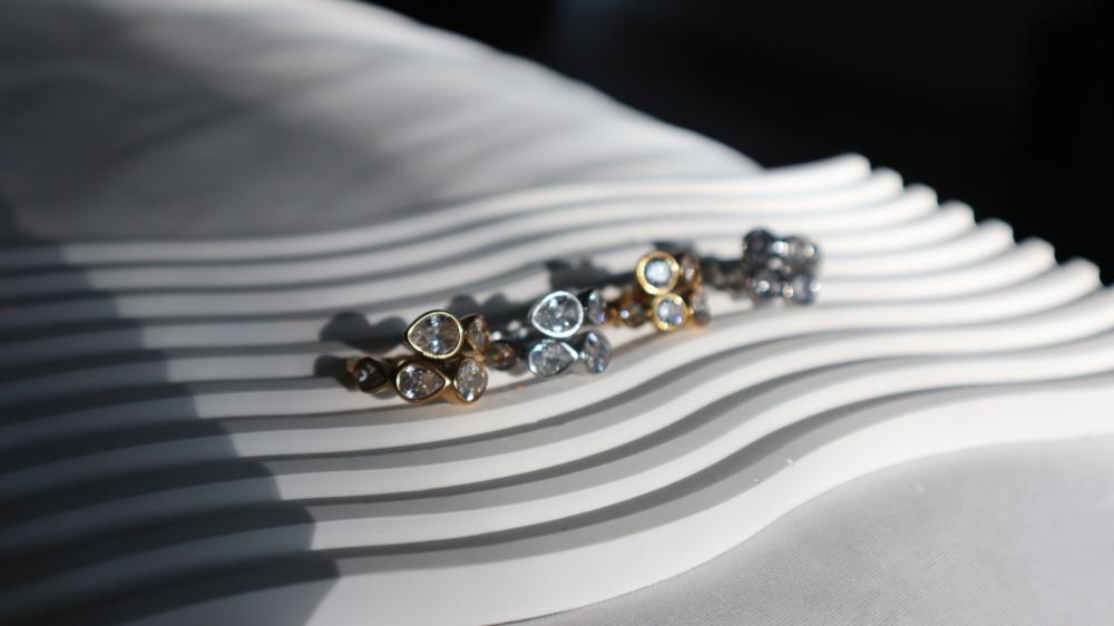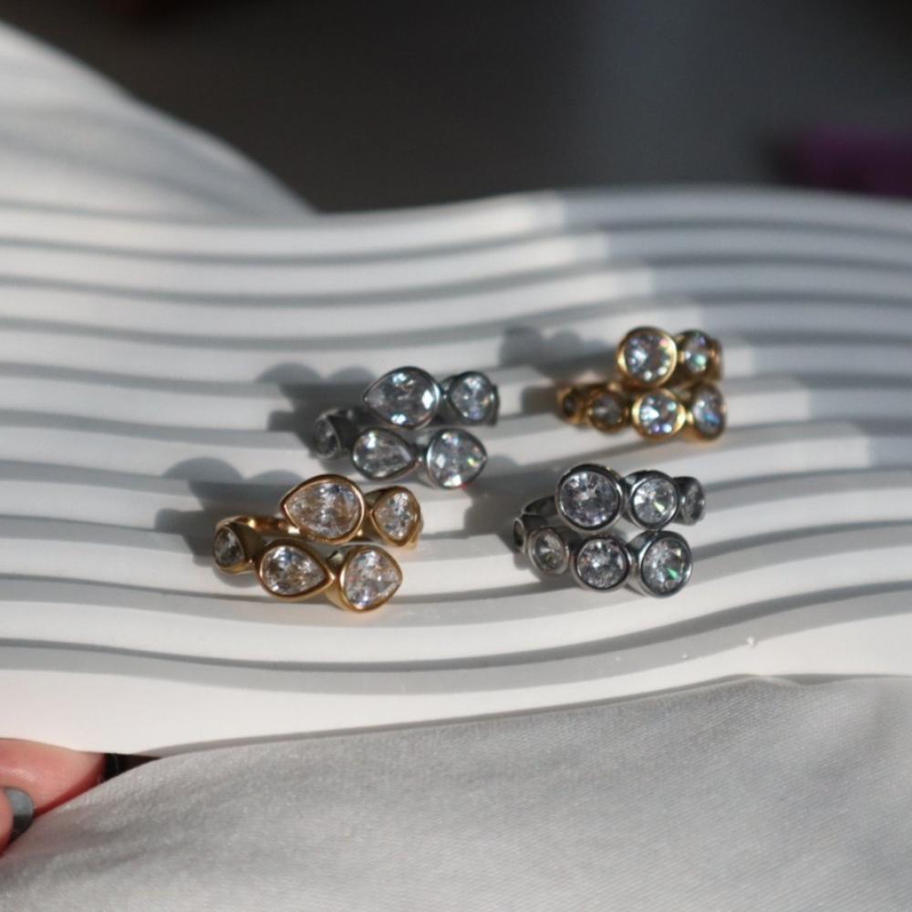 خاتم من الستانلس ستيل مطلي ذهب مع احجار الزركون