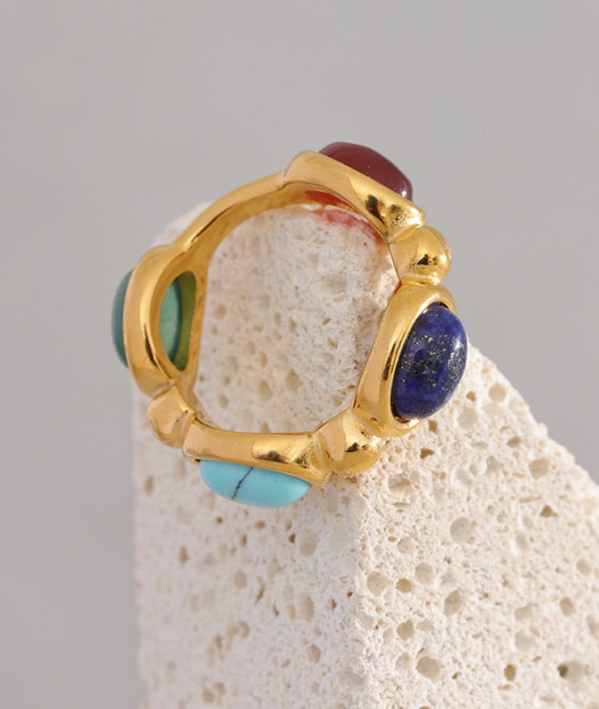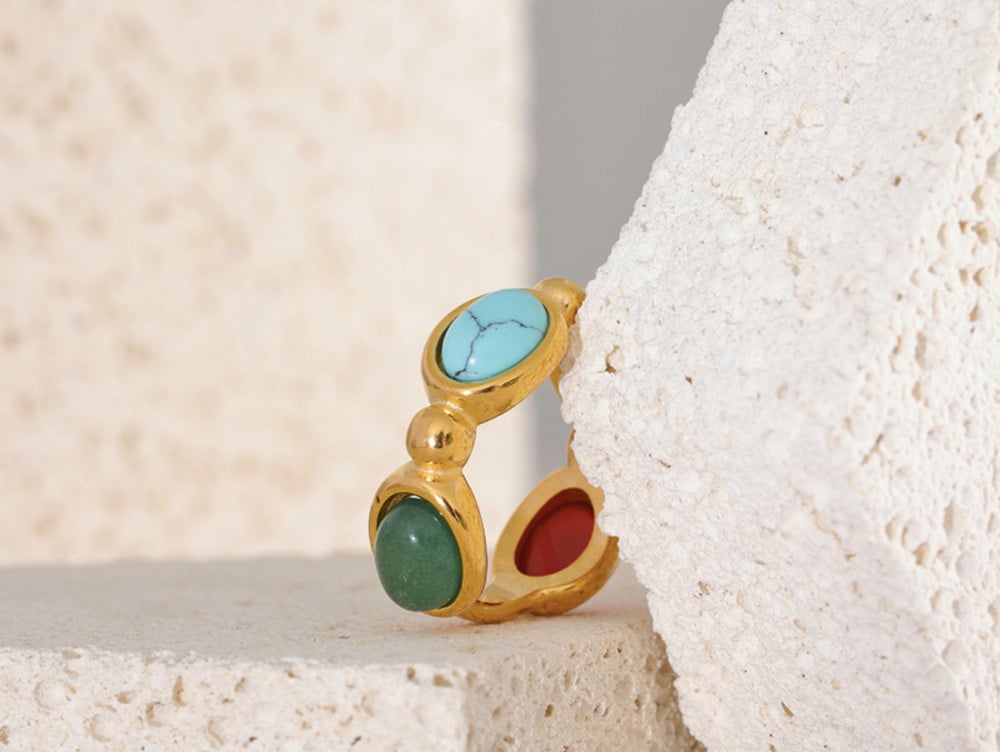 خاتم من الفولاذ المقاوم للصدا مع احجار طبيعية